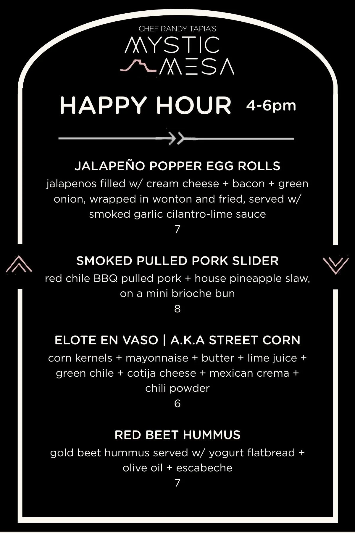 New! Happy Hour Menu Thursday - Saturday 4-6pm